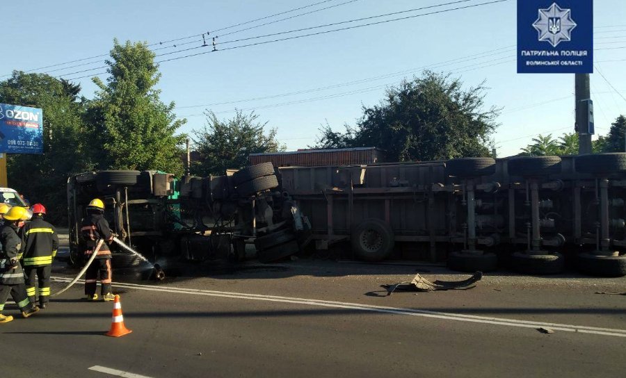 13 серпня, близько 19-ї години патрульні виявили дорожньо-транспортну пригоду на вулиці Ковельській. Інспектори помітили перекинутий вантажний автомобіль Mercedes-Benz Actros із напівпричепом Ricoe.