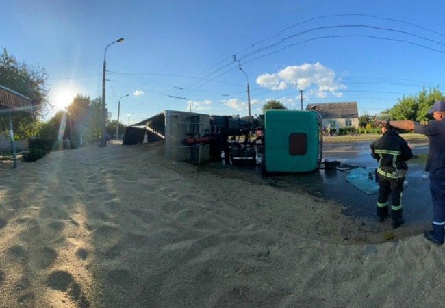 Повідомили деталі аварії в Луцьку, під час якої перекинулась фура із зерном. ФОТО