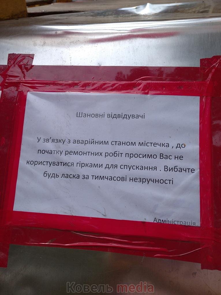 Адміністрація розклеїла на території майданчику попереджувальні листівки, в яких попросить «у зв’язку з аварійним станом містечка до початку ремонтних робіт не користуватися гірками для спускання», а також вибачилася за тимчасові незручності. Пише Ковель медіа.