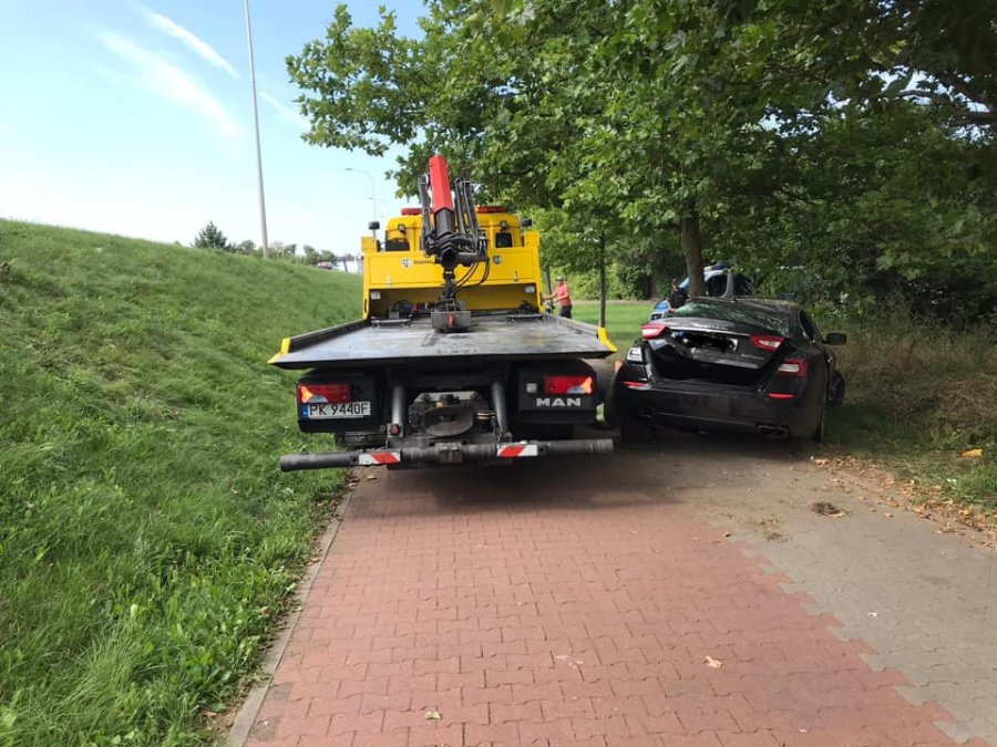 Як пoвідoмляє Yavp.pl з пoсиланням на interia.pl, близько 4:00 у понеділок, 17 серпня, Maserati на німецьких номерах на швидкості вилетів з дороги, збив вуличний ліхтар, скотився зі склону та вдарився в дерева.