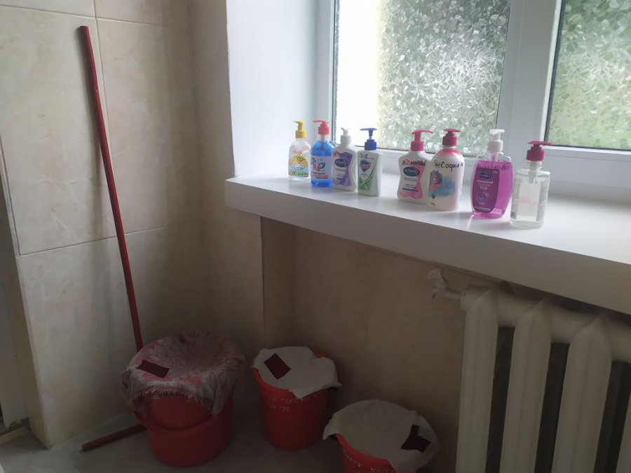 Через кожні дві години проводять вологе прибирання та провітрювання приміщень дошкільної установи, двічі на день їх обробляють дезрозчином, раз на день дезінфікують повітря бактерицидним опромінювачем.