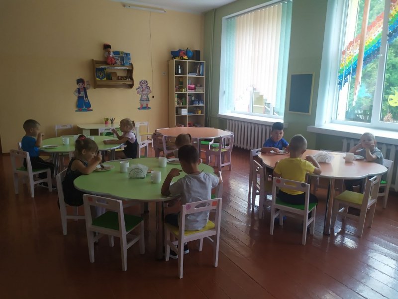 «При сприятливих погодних умовах більшу частину часу, окрім споживання їжі та сну, діти проводять на свіжому повітрі», - каже Аліна Петрівна. – Групи наповнені тільки наполовину. Це дає можливість розміщувати дітей за шестимісними столами – по троє, за двомісними – по одному в шахматному порядку».