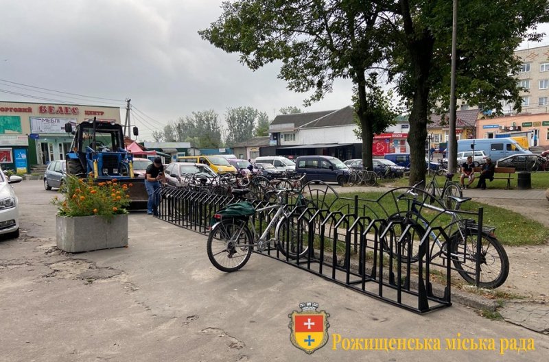 У Рожищі на площі Богдана Хмельницького встановлюють місце для паркування велосипедів.