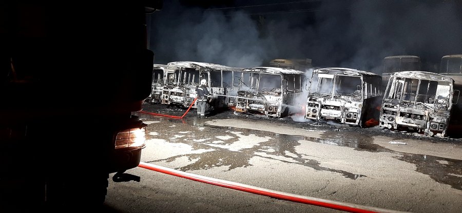 Загалом згоріли 12 автобусів, один - пошкоджений і чотири вдалося врятувати.