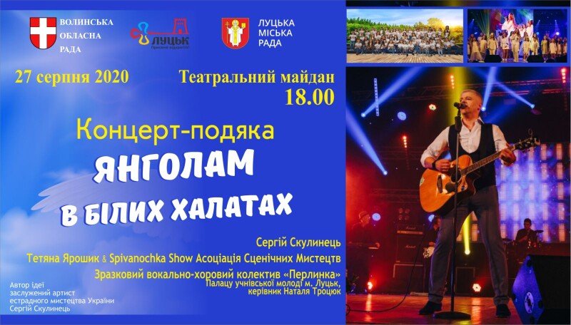 27 серпня о 18.00 на Театральному майдані Луцька відбудеться концерт-подяка лікарям «Янголам в білих халатах».