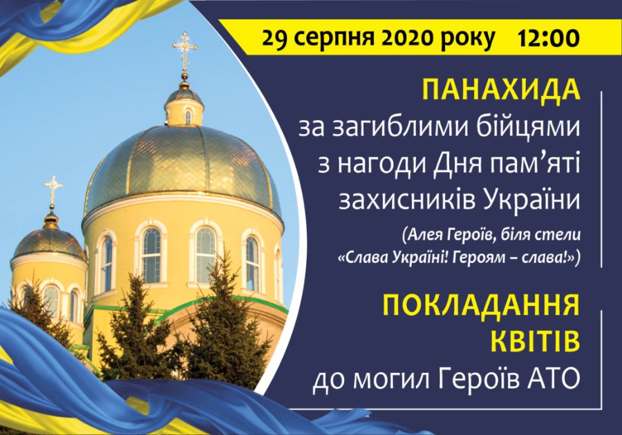 29 серпня – День пам’яті захисників України, які загинули в боротьбі за незалежність, суверенітет і територіальну цілісність України.