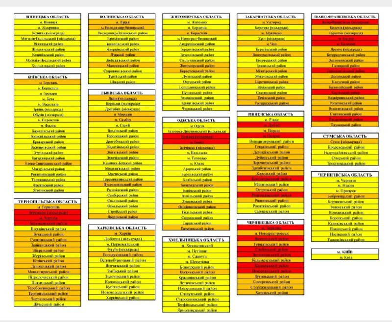 Так, з 00 годин 00 хвилин 31 серпня (понеділок) в Україні почне діяти нове епідемічне зонування.