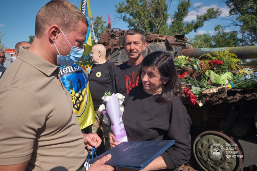 "Відкриття пам’ятного знаку біля села Первомайське у Ясинуватському районі, де восени 2014 року загинули шість українських воїнів, відбулося 29 серпня, у День пам’яті захисників України… Відкрили пам’ятний знак матері, дружини, доньки та сестри загиблих бійців", - йдеться у повідомленні.