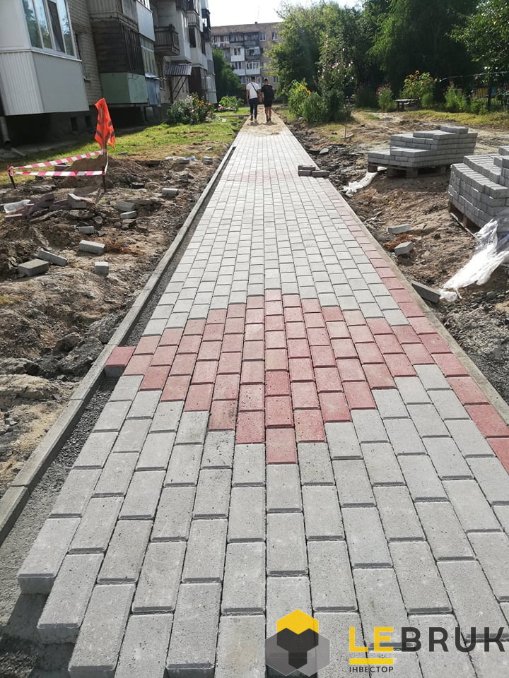 Для пішохідних зон у дворах на вулиці Січовій, 3, 3а, 5 та 7, а також вулиці Ковельській, 4, 6, компанія LeBruk буде укладати бруківку «Цеглинка» 6 см товщиною, сірого та червоного кольору.