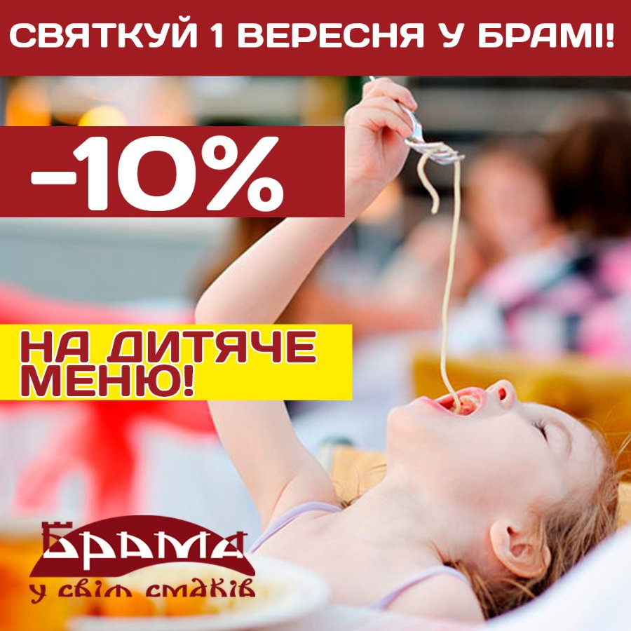 1 вересня у «Брамі» діятиме знижка -10% на нове дитяче меню.