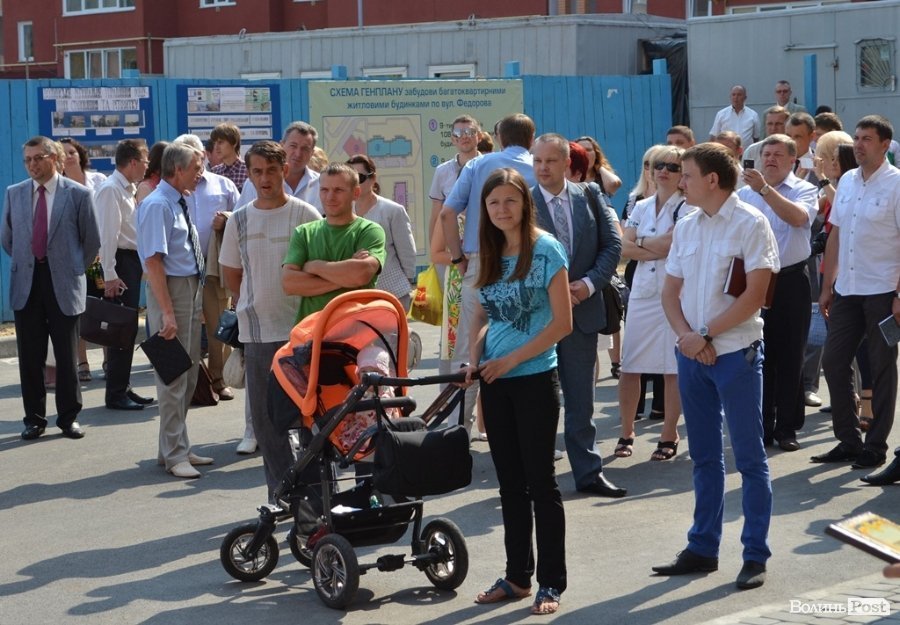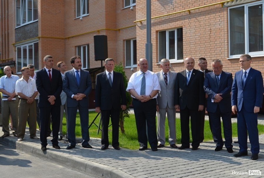 Віце-прем’єр-міністр Олександр Вілкул, перший заступник міністра ЖКГ Григорій Семчук разом з першими особами Волині – губернатором Борисом Клімчуком, мером Луцька Миколою Романюком, головою Волиньради Володимиром Войтовичем та іншими посадовцями – прибули до новобудови на вулиці Федорова, 4д.