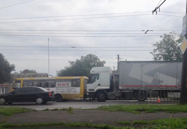 На вулиці Ковельській, що у Луцьку, тягач з напівпричепом врізався в маршрутне таксі.