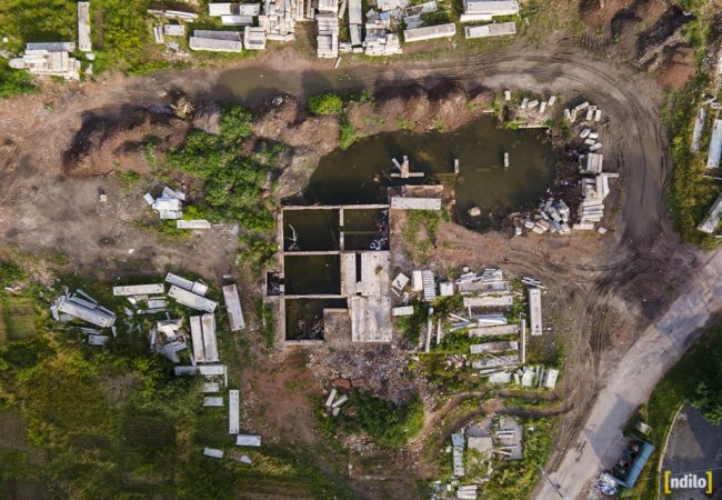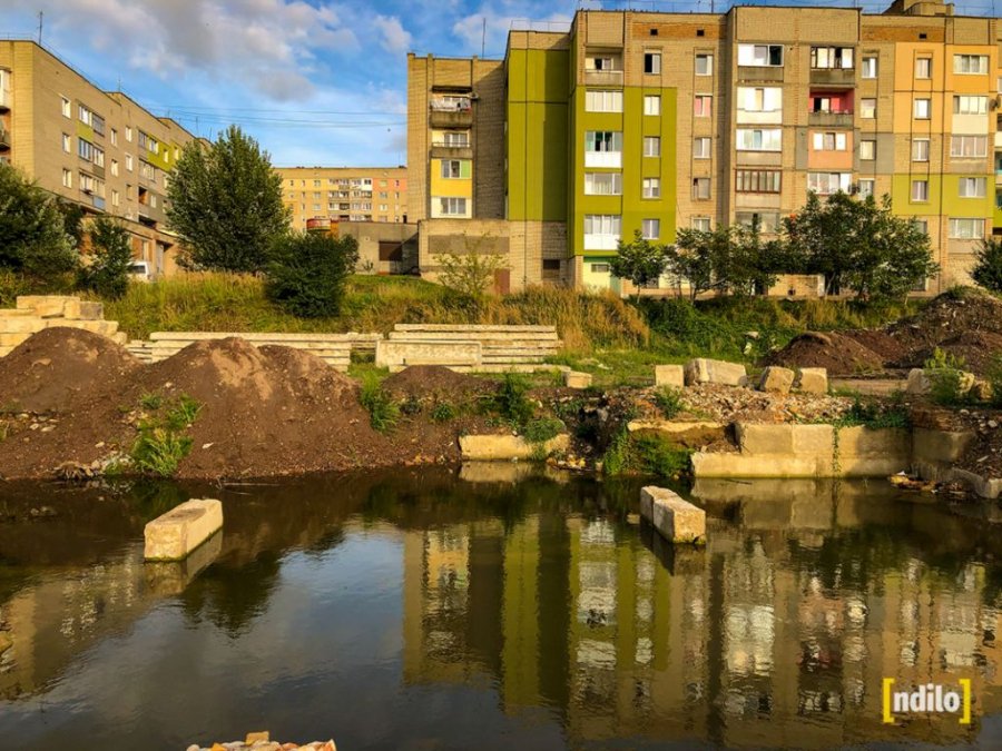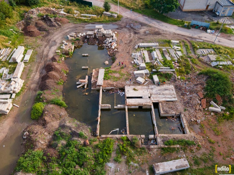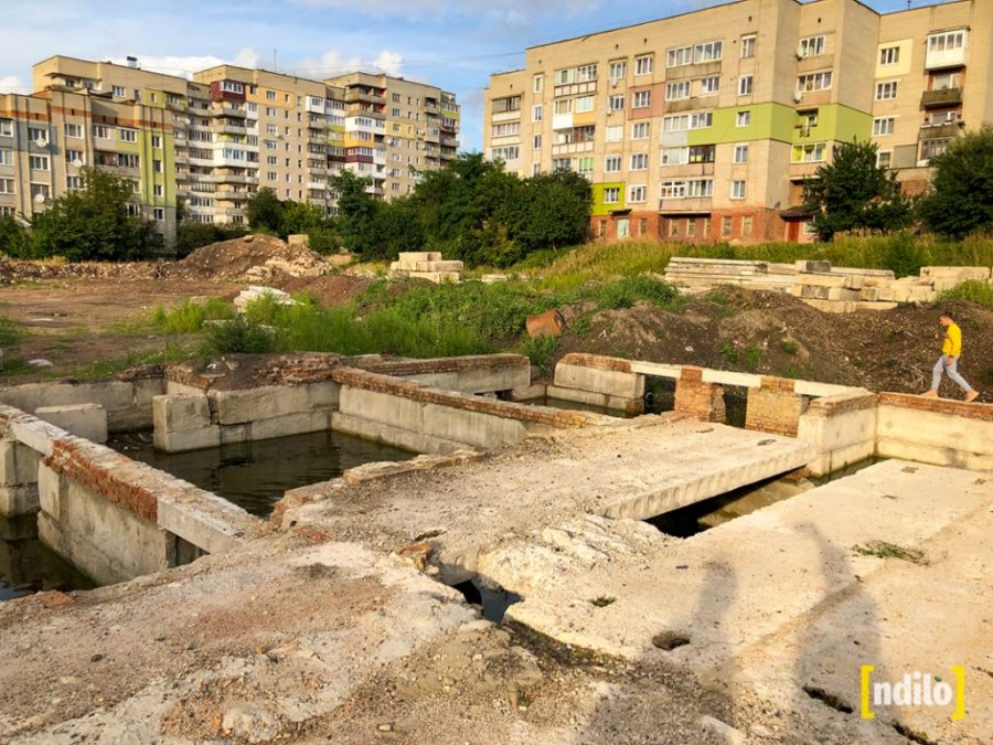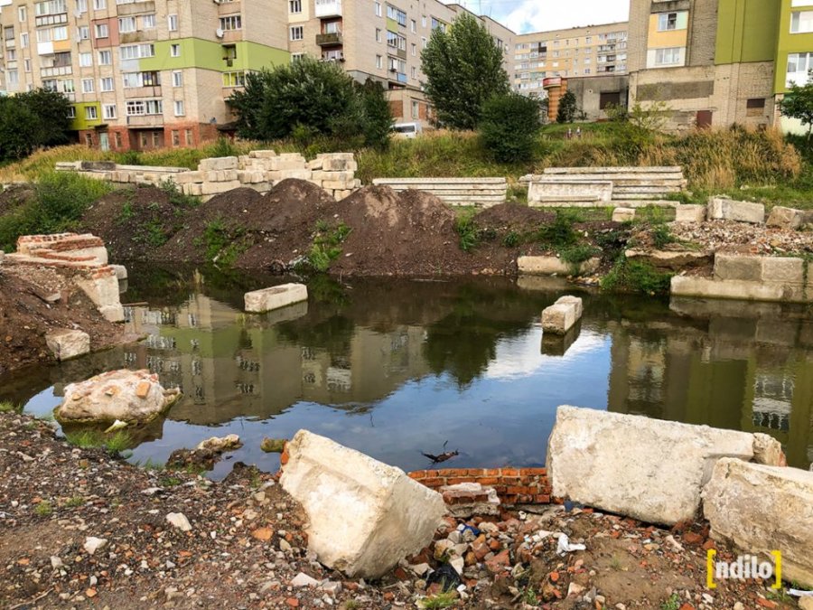 Розібрана недобудова дитячого садочка у Нововолинську на 5-му мікрорайоні стала «басейном» для дітей.