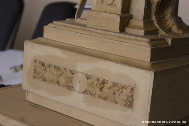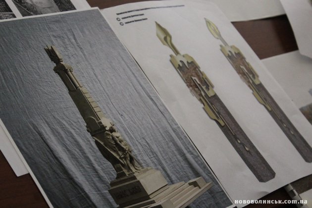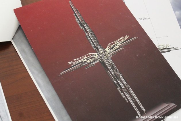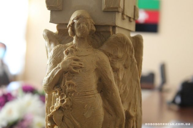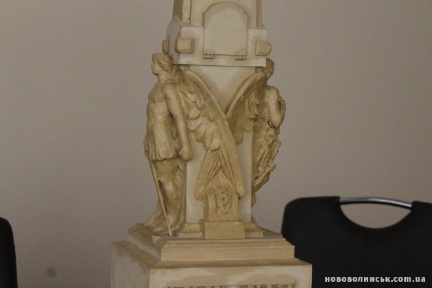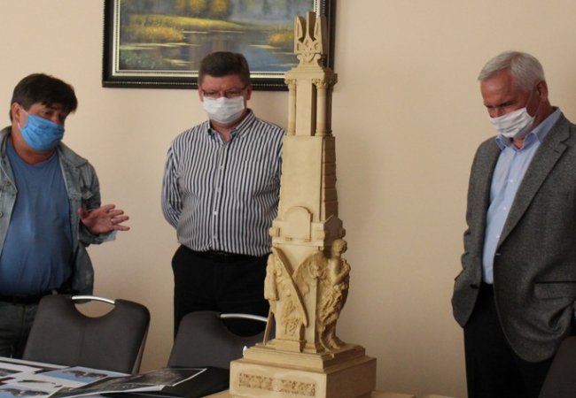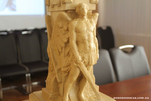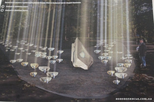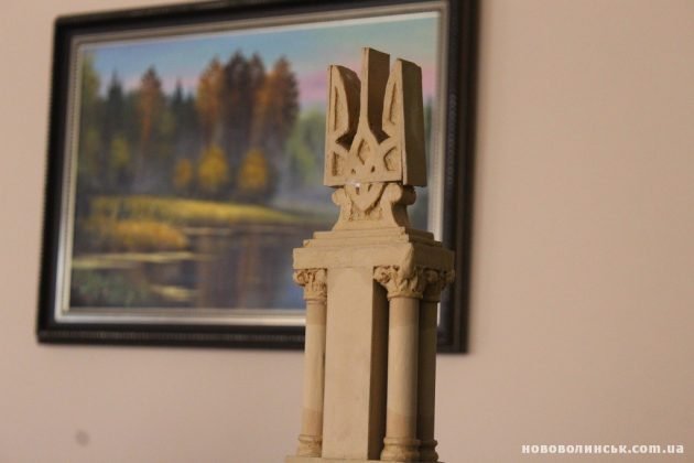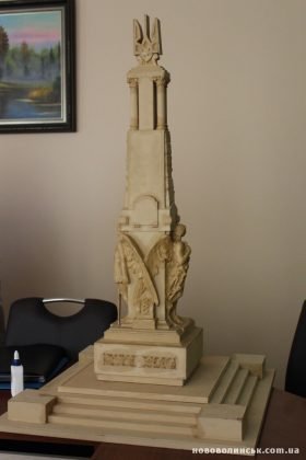 Насамперед Андрій Павленко показав модель обеліска, яку виготовили зі спеціального архітекторського пластиліну. Насправді пам’ятник сягатиме 12 метрів заввишки і за словами голови фонду, пам’ятного знаку таких масштабів немає ніде в Україні, до того ж, його ідея наповнена символікою.