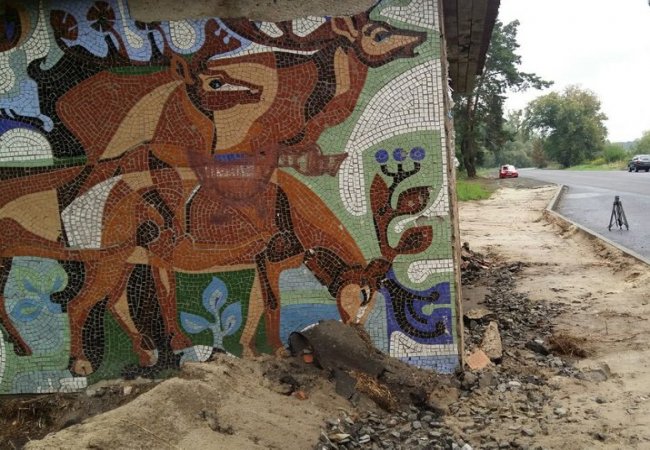 Дві зупинки - одна із них у селі Сокиричі, інша - в Озері, на яких видніються залишки монументальної мозаїки будуть демонтовувати, бо вони є небезпечними, - каже Михайло Антонян.
