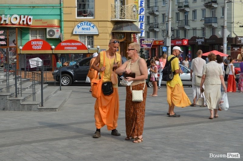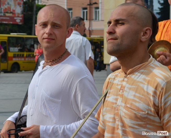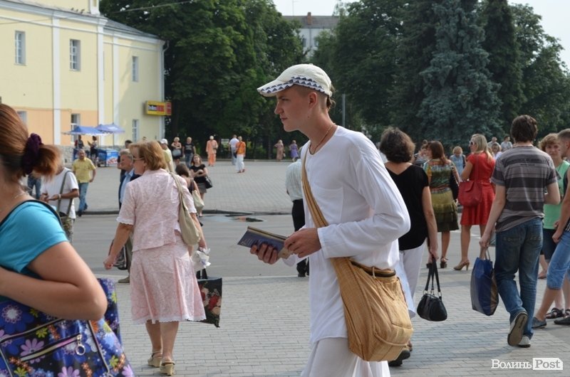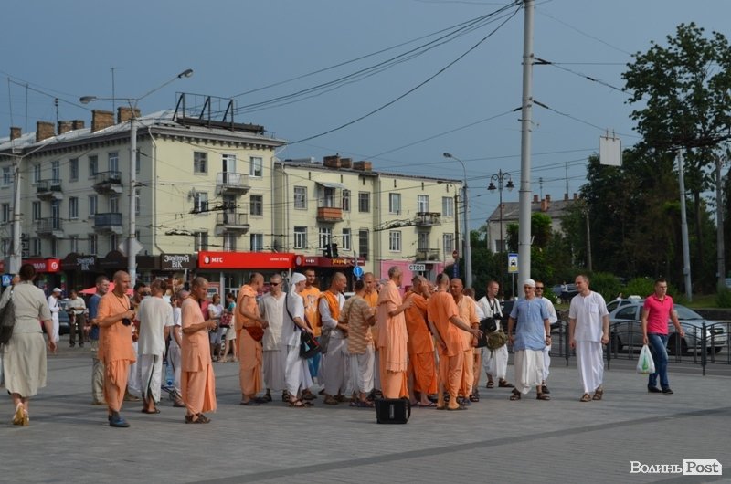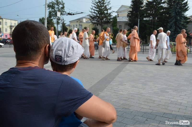 Танцювали і співали кришнаїти у харінамі, тобто, сумісному вуличному прославлені Святих Імен, 11 липня у другій половині дня у центрі Луцька. Як розповів один із учасників заходу, який відрекомендувався монахом Олександром, присутні чоловіки приїхали з центральних та східних областей України.