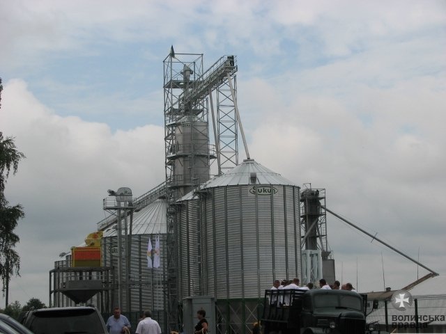 А ше доставляє антикварний ЗіСок на фоні сучасного зернокомплексу... кагбе намєкая, шо в умовах аграрної Волині цей елеватор буде "загружений роботою" 24 години на добу 365 днів нарік. У нас же захмарні врожаї на пісках