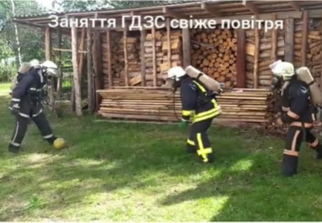 Волинські рятувальники тренуються із зав'язаними очима та грають у футбол в повному бойовому спорядженні