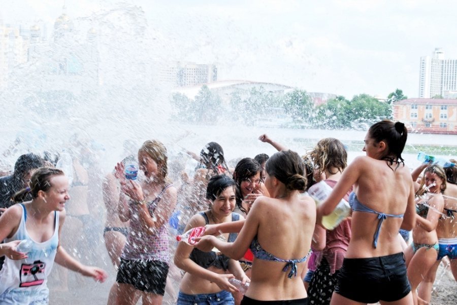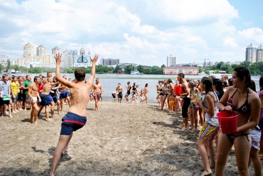 У Києві молодь влаштувала на одному із пляжів справжню водяну війну.