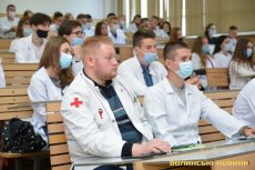 «Ми хочемо, щоб із першого курсу ви були присутні в лікарні, можливо, як волонтери, можливо, це будуть обов’язкові чергування двічі-тричі на рік, щоб ви одразу відчули, що таке медицина, – додав Вадим Ульянов. – Плануємо підключити наших психологів і запропонувати вам відпрацювання нових психологічних навичок. Під час чергувань у лікарнях ви будете спілкуватися з хворими і вчитися взаємодіяти на рівні лікар-пацієнт. Сьогодні ви увійшли в історію як перший набір медичного факультету Волинського національного університету».