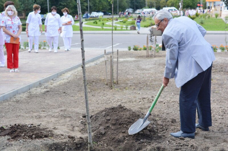 До першої річниці роботи перинатального центру у майбутній сквер висадили кілька десятків декоративних слив, кленів, сакур та інших дерев. Річницю відзначали у п’ятницю, 11 вересня, а наприкінці офіційних заходів посадили перші дерева, повідомляє «Перший».