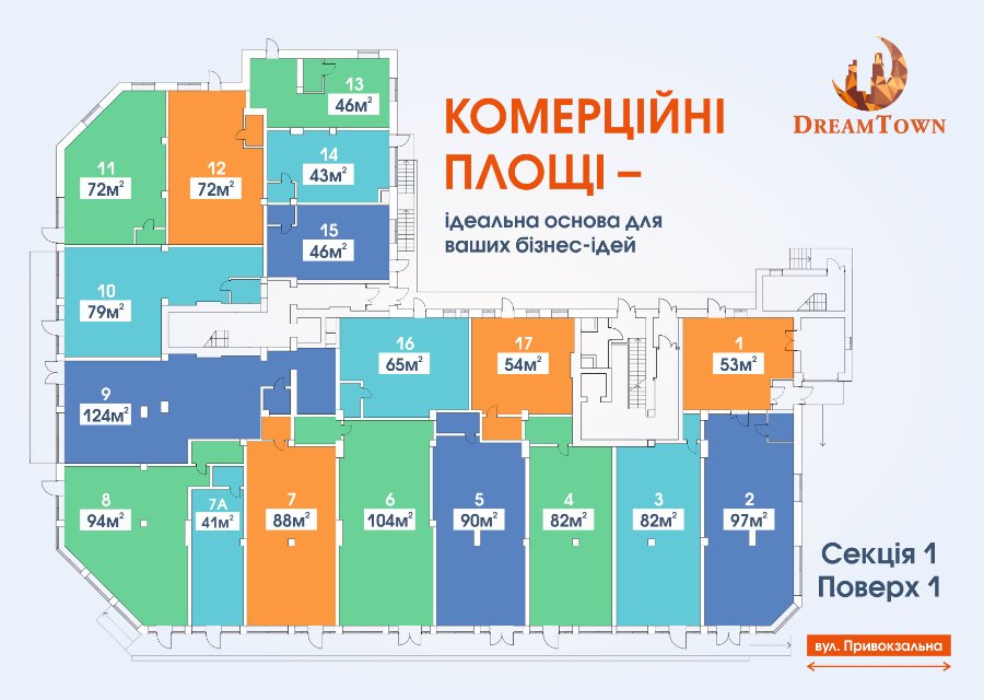 «DREAM TOWN» пропонує до продажу комерційні приміщення на 1-х поверхах житлового комплексу. Незабаром введуть в експлуатацію два будинки комплексу, де ще є вільні пропозиції комерційних площ.
