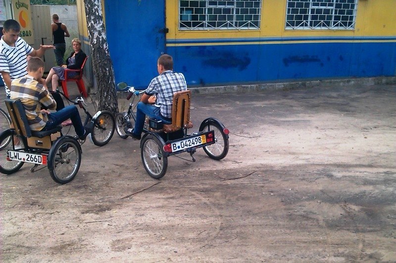 Та й «бігають» триколісні досить жваво. Хлопці кажуть, що швидкість може сягнути до 35-40 кілометрів за годину. Одне слово – річ зручна, цікава і, що головне, неординарна. До того ж – значно дешевша за звичайний велосипед.