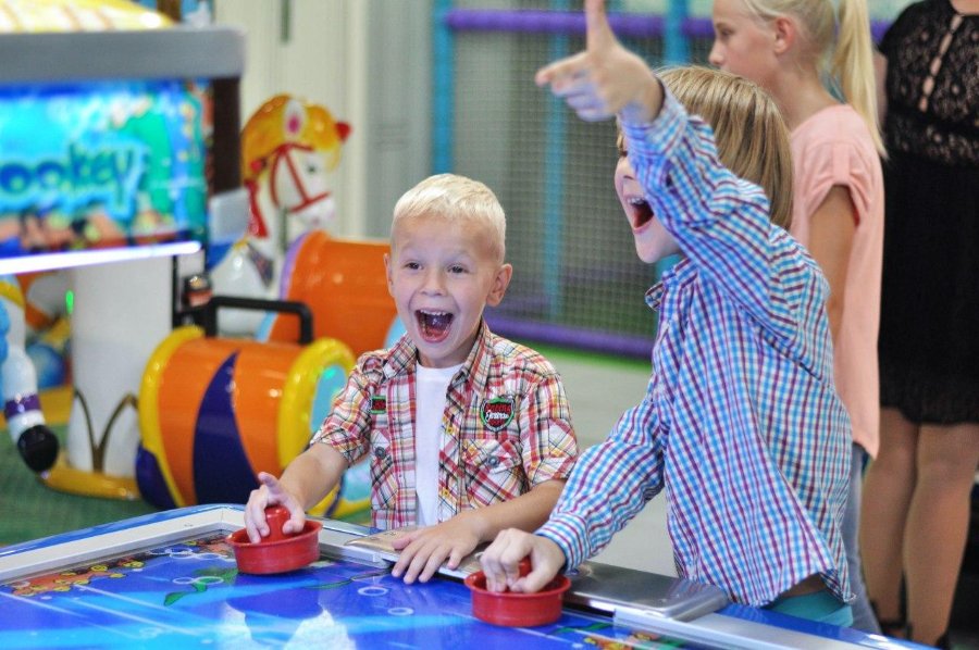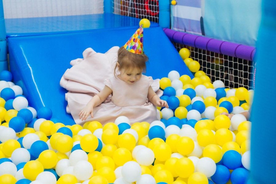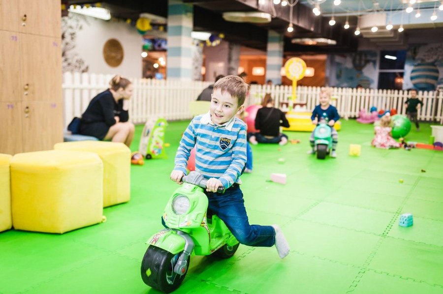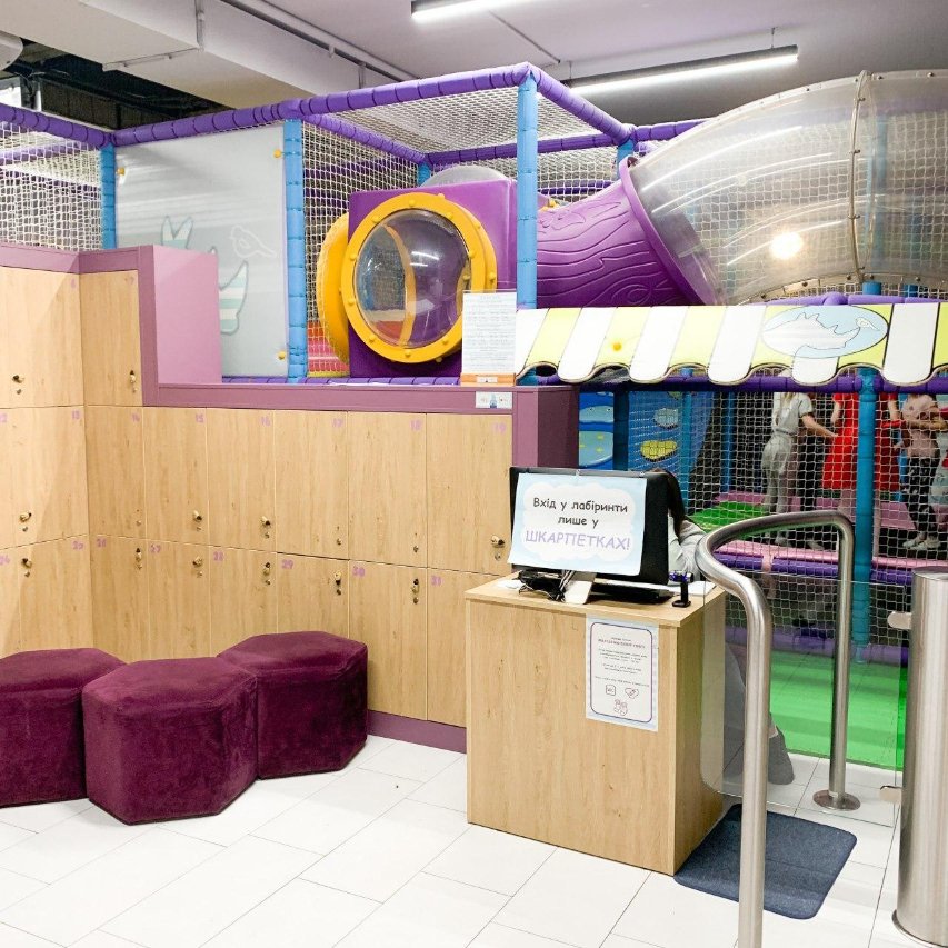 - велика безпечна ігрова зона для крихіток з тематичними будинками, якісними іграшками, атракціонами, лабіринтом та батутом;