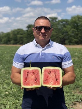 "Дійсно, придумали японці, потім ідею підхопили китайці, а ми вирішили теж спробувати. Довго працювали, вчилися і перемогли. Практично ні в кого в світі не виходять стиглі кубічні кавуни, а у нас вийшли. Це не випадковість, оскільки я спочатку ставив завдання, щоб приваблювала не лише форма, а й зміст", — каже директор Роман Дяжук.