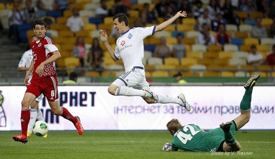 Уже на другій хвилині гри відзначився півзахисник гостей Ярослав Кінаш. Він отримав м'яча від Еріка Бікфалві та "підсік" шкіряного над воротарем "Динамо" Олександром Шовковським.
