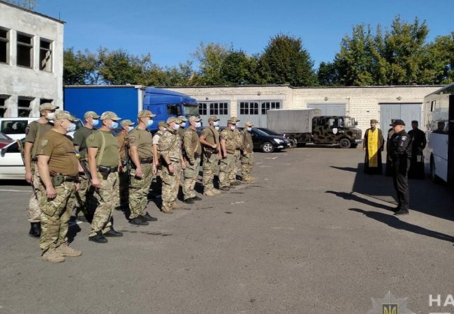 Начальник ГУНП в області Юрій Крошко і його заступник Сергій Козак побажали бійцям швидкого повернення додому та сумлінного виконання завдань.