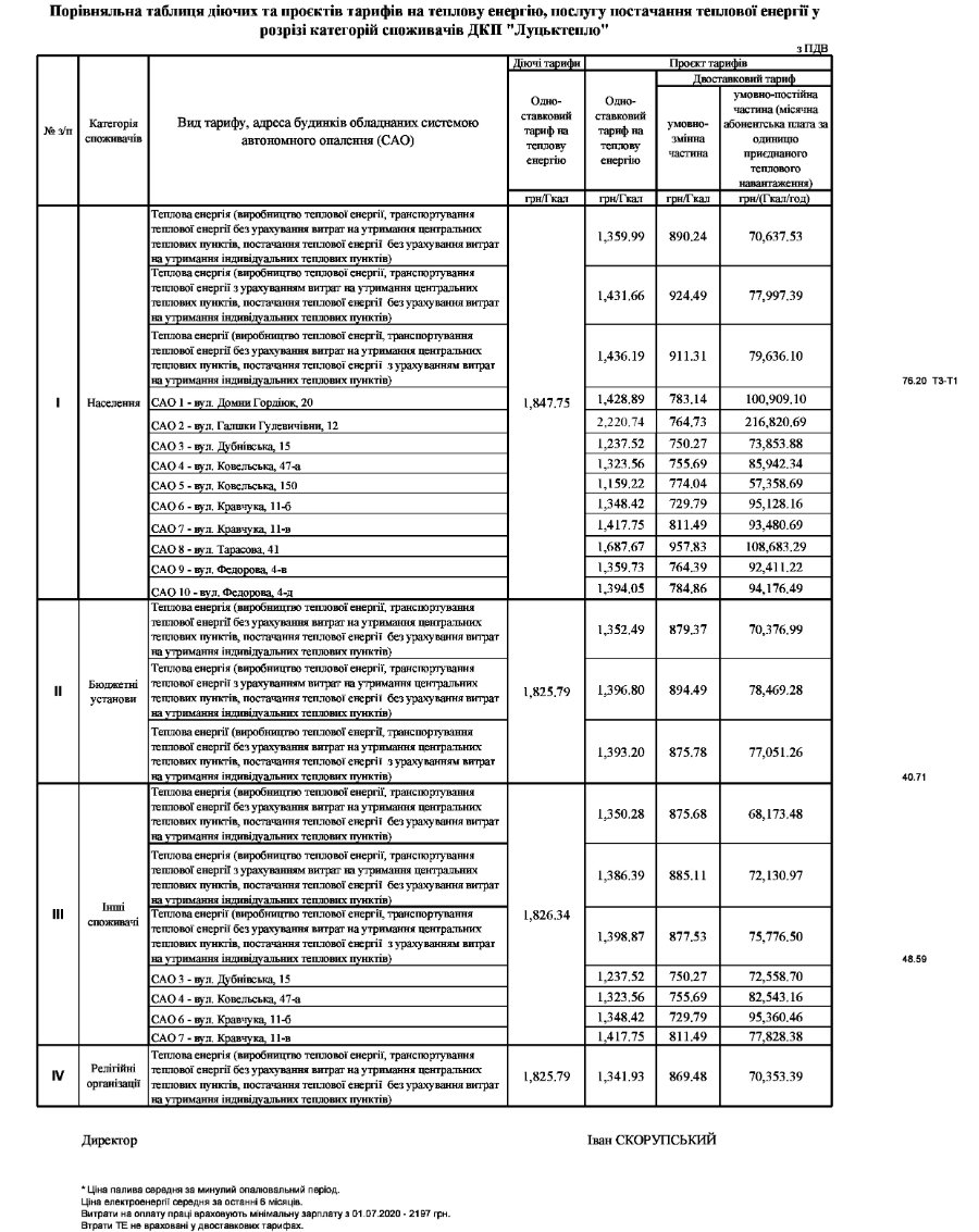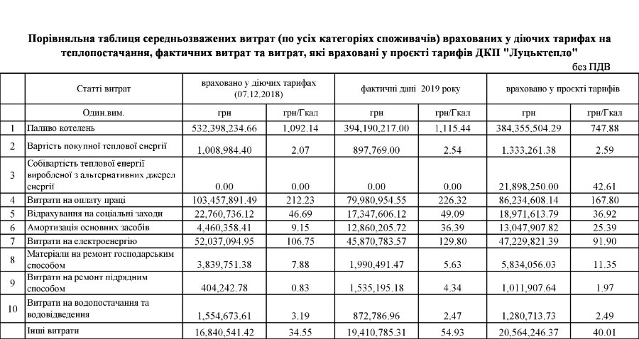 Директор ДКП «Луцьктепло» Іван Скорупський наголосив, що нові тарифи дозволять забезпечити нормальне функціонування підприємства, адже нині воно має величезні борги перед «Волиньгазом» та «Волиньобленерго». Населення ж боргує «Луцьктеплу» 90,9 мільйона гривень, юридичні особи – 6 мільйонів.