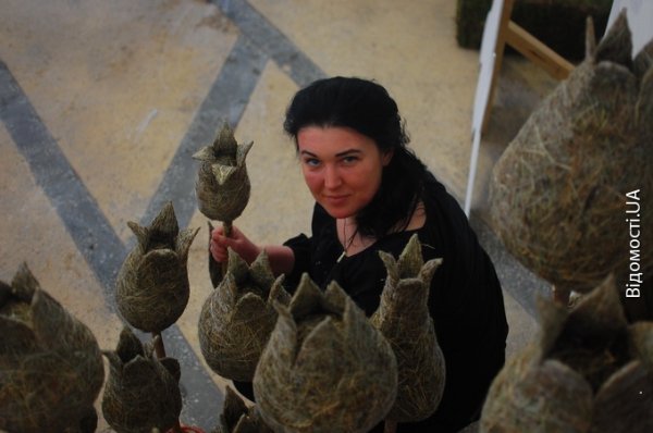 Представлені вироби можна також придбати. Наприклад, трав’яні тюльпани, що зацікавили не одного відвідувача, вартуватимуть від 100 до 300 гривень, залежно від розміру.