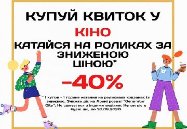 Так, при купівлі квитка у кінотеатр «PremierCity» відвідувачі отримуватимуть купон зі знижкою 40% на арену розваг «GeneratorCity».