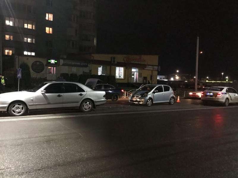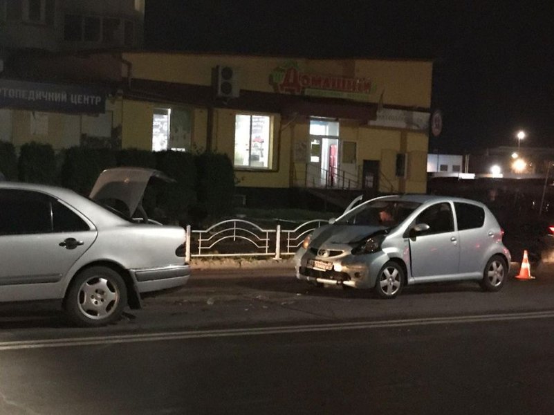 Як стало відомо ІА "Конкурент", сірий легковик Toyota влетів у задній бампер Mercedes. Внаслідок аварії автомобілі отримали незначні механічні пошкодження, у Toyota пошкоджений передній бампер.