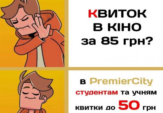 Зазначається, що вартість квитків для учнів та студентів у кінотеатрі Premier City – всього 50 гривень на будь-який сеанс до кінця вересня.