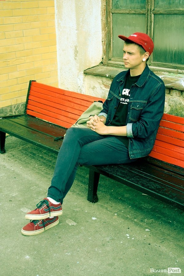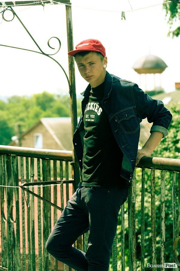 Червоні кеди і кепка Андрія підкреслюють молодіжність серйозної темно-синьої джинси.