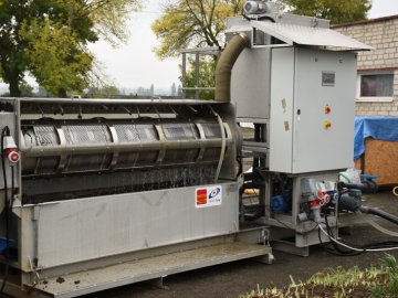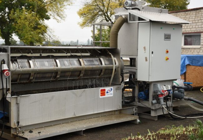 Представлений прилад висушує відходи, зменшуючи їх об’єм у 3-4 рази, а мулова маса, що отримується в результаті, може бути використана як добриво у сільському господарстві. Вода, що надходить у результаті, відправляється на доочистку.