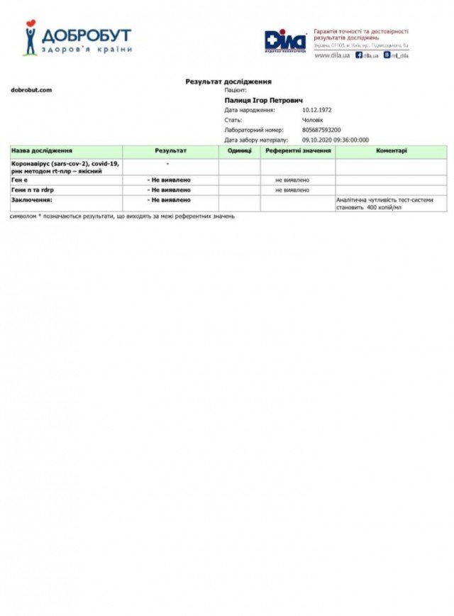 Нагадаємо, 1 жовтня нардеп в ефірі програми «Право на владу» повідомив, що захворів на COVID-19. Ніяких симптомів у нього не було. Через контакти із хворими він вирішив пройти тестування.