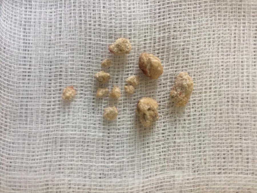"Цей клінічний випадок був непростий через наявність супутньої патології у пацієнтки. Вражаючим також був розмір самого каменя 2,5х3,0 см. Проте нашим урологам Миколі Зубку та Мирославі Гаврилюк успішно вдалось видалити камінь повністю та з мінімально можливим травматизмом для пацієнтки. А лікар-анестезіолог Самарчук Т.В. зробила операцію безболісною та комфортною за допомогою епідуральної анестезії", - йдеться в дописі.