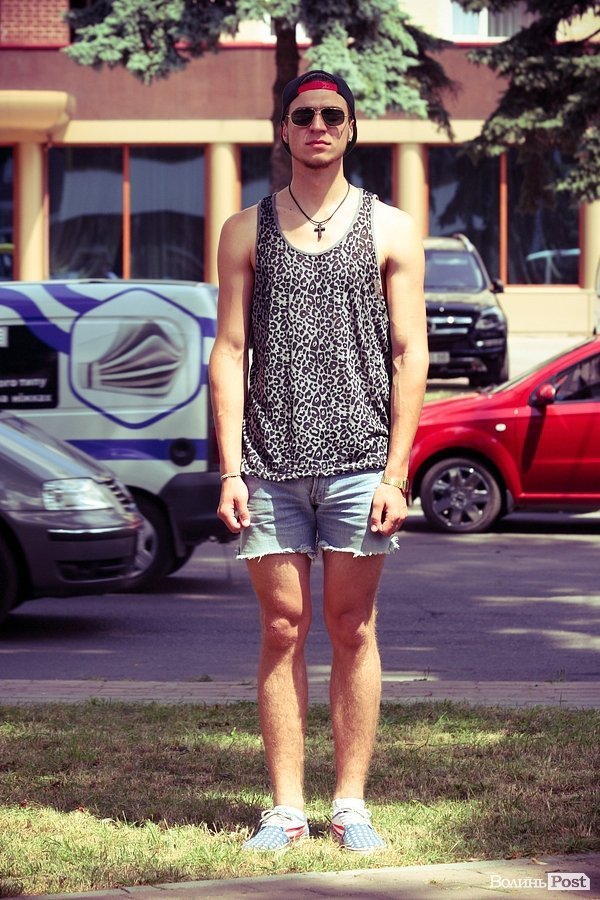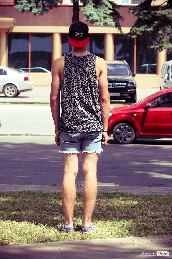 Є прохання. Ця "модель" з ногами, як в дикого кабана, нетипова. Є масові "моделі": одягнені в шорти "в ромашку" чи в "пальмочку" - жовті, голубі або рожеві. З чорними порепаними пятками і непостриженими нігтями (пазурами), небриті, з висячими животами від надмірного вживання пива, яке доброджує в череві, з блукаючими очима, які дивляться на прохожих, як на стіну. Це - "чоловічий бренд" Луцька.
