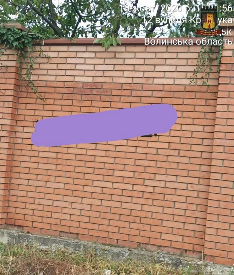 Довідково: відповідно до п.п.2.5.5.1.12 Правил благоустрою міста Луцька забороняється робити написи, малюнки та подряпини на стінах будинків, споруд, парканах, тротуарах, шляхах, набережних, пам’ятниках та інших елементах благоустрою.