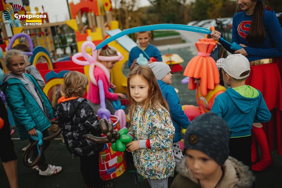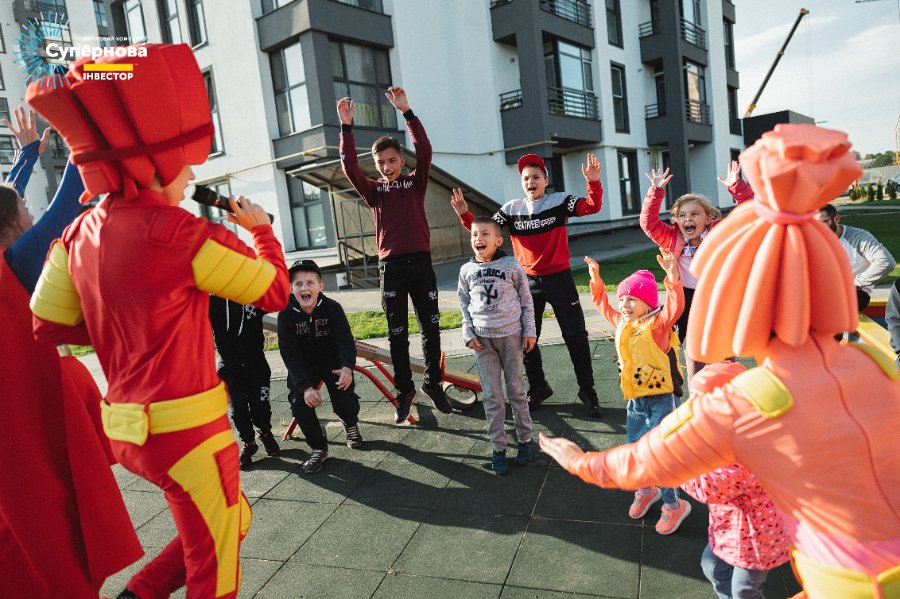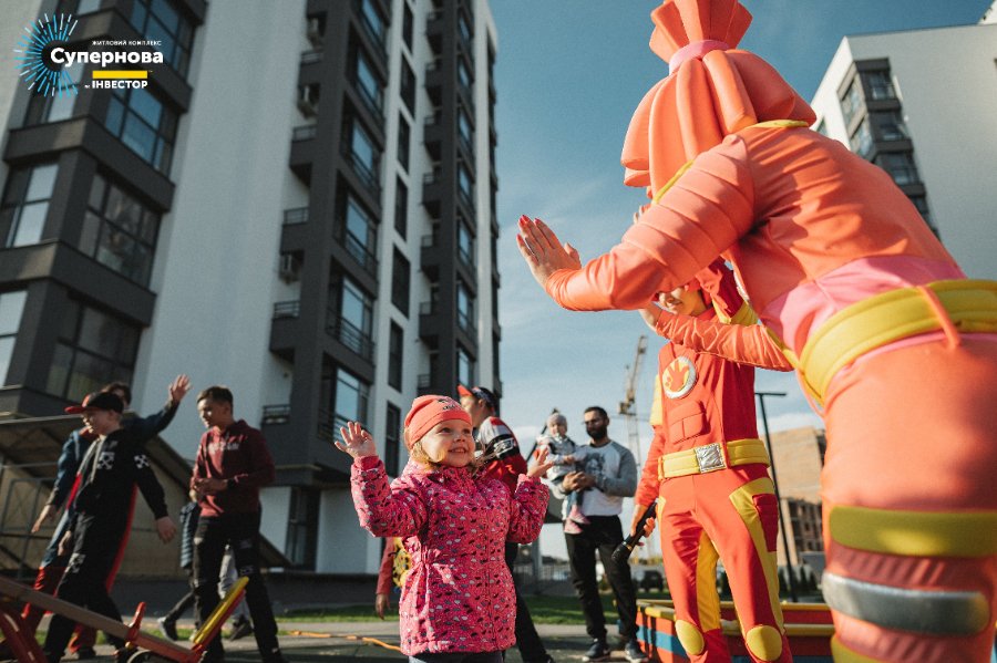 Спершу свято почалося для найменших мешканців “Супернови”. На дитячому майданчику з’явилися аніматори, і впродовж двох годин розважали малюків конкурсами та іграми.
