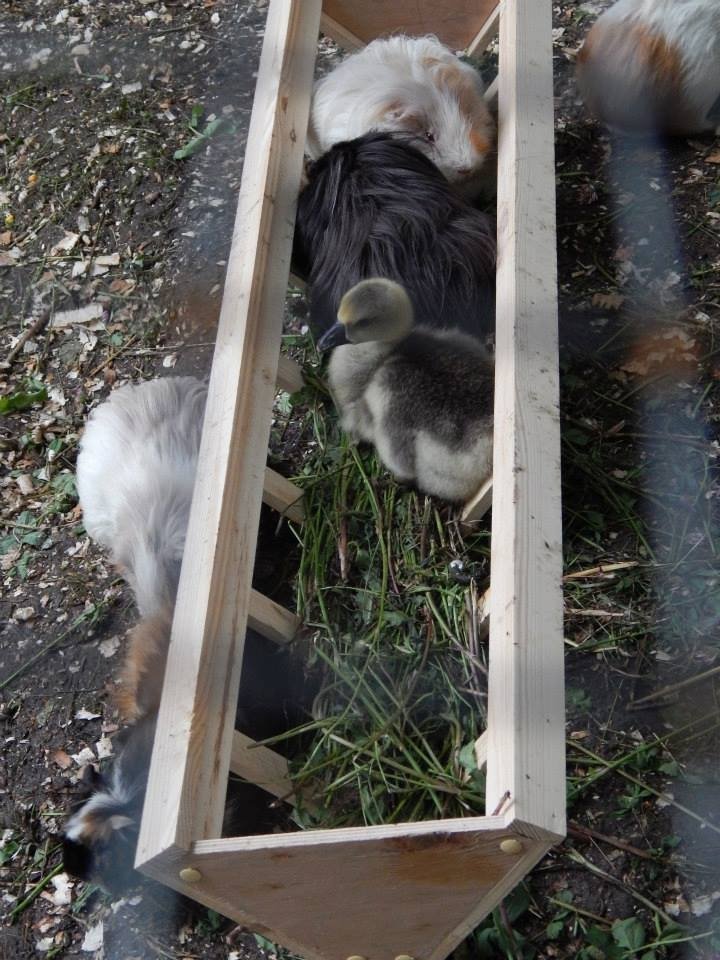 "Це ніби й несуттєво, але ми радіємо за кожного нашого «вихованця». Гусенятко знайшли у парку і принесли до нас місяць тому. Манюньке, кумедне, довірливе. Спочатку крихітку поселили у вольєр до морських свинок та кроликів. Гусеня з усіма здружилося – разом і харчувалися, і спали", - пишуть у Facebook працівники зоопарку.