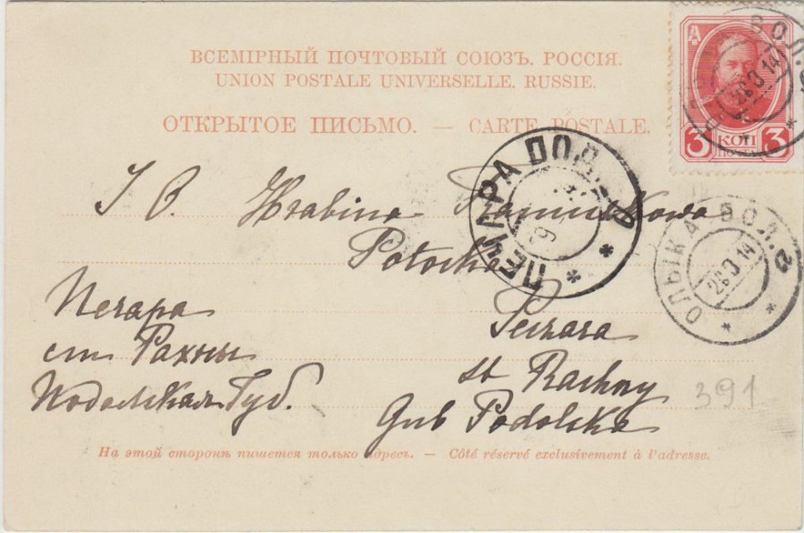 Ці листівки відправив князь Януш Раздивілл до сестри Марії Потоцької. Можливо, листівки були замовленні у поважному видавництві для власного використання родиною Радзивіллів. Варто зазначити, що листівки цієї серії до інших відправників не траплялися.
