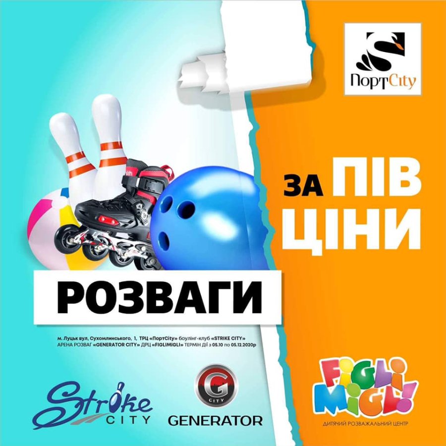 "Здійснюйте покупки на будь-яку суму у магазинах та кафе ТРЦ «ПортCity»* та гарантовано отримуй купон на знижку 50% на розваги", - повідомляє адміністрація закладу.