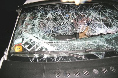 У результаті він зіткнувся з колесовідбійником, після чого перекинувся на правий бік.