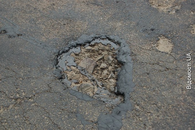 На запитання, чому не вирізають навколо ям асфальт і не роблять ремонт, як належить, шляховики відповіли, що у них така технологія.