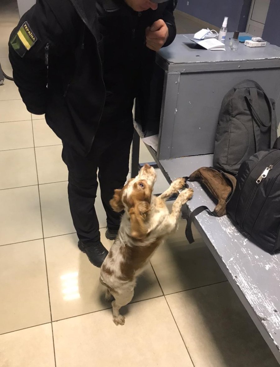 До проведення спільного з митниками огляду багажу залучили службового собаку прикордонників, спеціально натренованого на пошук наркотиків. Пес вказав правоохоронцям на одну із сумок. Як з’ясувалося згодом – не даремно. Всередині сумочки 28-річного мешканця Чернігівщини знаходився поліетиленовий пакет з речовиною рослинного походження сіро-зеленого кольору.