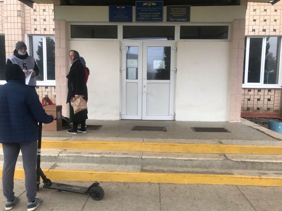 На дільниці №071004 у місті Ковель не вистачає скриньок – на великій дільниці містяться 4 стаціонарні скриньки. Окрім того, кабінки тут розташували притул до гардеробної – таким чином, у них немає суцільної задньої стінки. Також перед входом у приміщення є сходинки однак пандус відсутній.